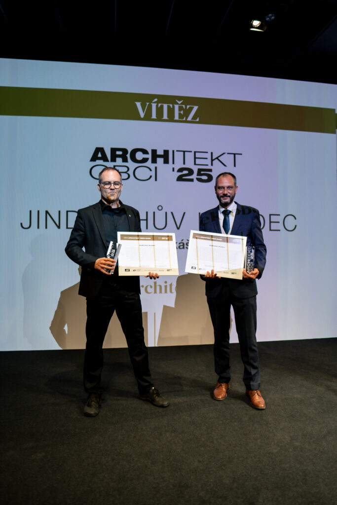 Laureátem ocenění Architekt obci 2025 se stal městský architekt Jindřichova Hradce Lukáš Soukup společně se starostou Michalem Kozárem. Cenu předal loňský vítěz – architekt David Mateásko, který znovu připomněl, že bez vizí a dlouhodobého nasazení nelze města efektivně rozvíjet. Společně s laureátem se shodli, že by měla být funkce městského architekta a její význam více zviditelněná.
