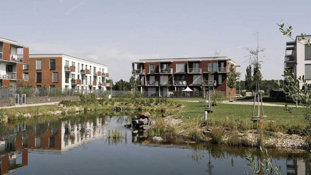 Už od počátku bylo jasné, že nepůjde o běžné bytové domy. Developer kladl důraz na moderní technologie a maximální komfort budoucích obyvatel. Pod každým domem jsou podzemní garáže s nabíječkami pro elektromobily – vybraná místa jsou osazena třífázovou 22kW nabíječkou Terra AC od firmy ABB. Všechny byty mají přístup k optické síti a elektroinstalace je navržena s ohledem na současné i budoucí potřeby uživatelů.