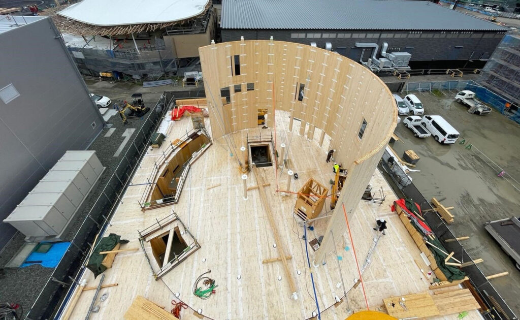 Montáž dřevěné konstrukce pak prováděl společný tým hlavního dodavatele Daisue Construction a českého subdodavatele A2 Timber. V Japonsku se jedná o poměrně netradiční spolupráci; místní trh je protekcionistický a zahraniční subjekty do takových projektů obvykle nepouští.