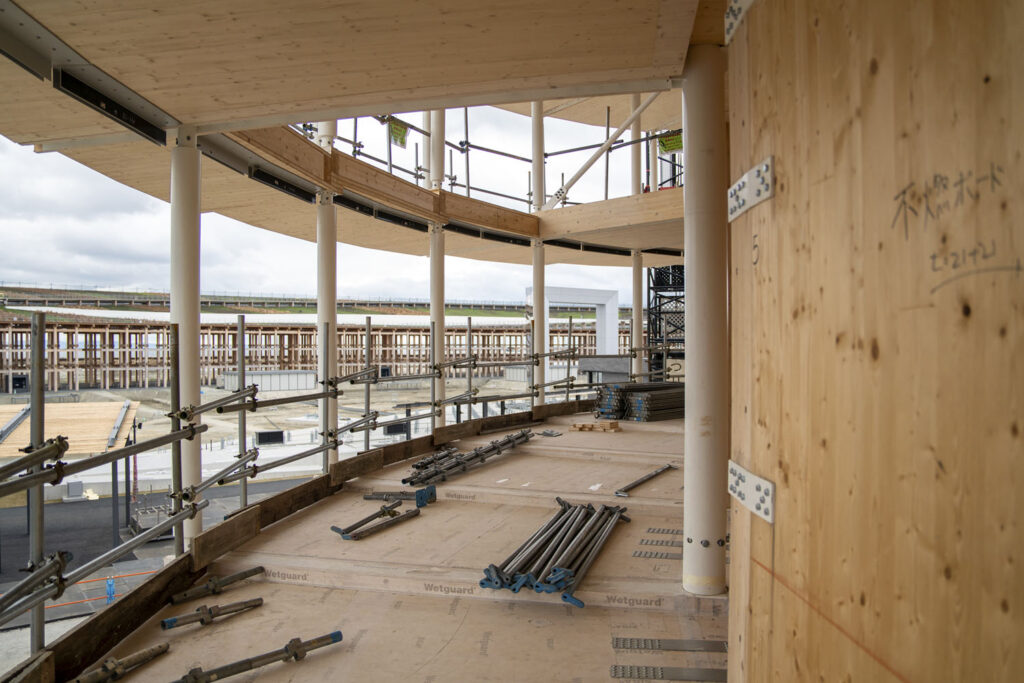 a trvali na ocelové konstrukci, dřevo chtěli jen jako doplněk. Nakonec jsme na to přistoupili a díky tomu jsme v říjnu 2023 získali stavební povolení dočasné stavby – temporary building permit. Ale pak přišel pan Soška jako zástupce investora a řekl, že si přece objednali dřevěnou stavbu. Všechno jsme mu vysvětlili, a když jsme se za měsíc vrátili do Japonska, získal proces pro povolení dřevostavby hrubé obrysy, a mohli jsme se vrátit k původní variantě. Všechny ostatní státy se tomu podřídily, snad nikdo nemá pavilon s dřevěnou konstrukcí. Pan Soška toho dosáhl díky tomu, že jednání probíhala na státní úrovni, na ministerstvech, a politici mu šli nakonec naproti. Nevěřil nám ani tým japonské architektonické kanceláře, tvrdili, že pracujeme s deskami, které nic nevydrží, u nich se z nich dělají bedny – ale většinou to byly námitky, které směřovaly k tomu, aby se mohli projektu vyhnout. Nakonec architekti vyměnili partnerskou kancelář v Japonsku (tzv. Architect of Record), našli jsme i nového statika – taky neměl zkušenosti s dřevěnými konstrukcemi, ale byl otevřený a snažil se pochopit, co mu říkám…“