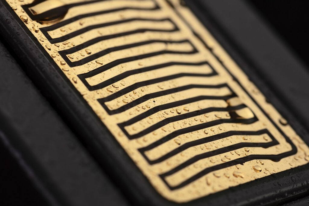 Dešťové senzory střešních oken VELUX fungují na dvou principech v závislosti na zdroji energie. „U střešního okna napájeného elektřinou senzor spíná v důsledku zvýšené vlhkosti, kdy dojde k impulzu a senzor okno zavře. Pro lepší vodivost je proto pozlacený, aby reagoval co nejrychleji,“ vysvětluje Martin Masár a navlhčeným prstem demonstruje citlivost senzoru, který obratem střešní okno zavírá. „Dešťový senzor je neustále pod drobným napětím, má tedy odběr elektřiny, což by u solárního motoru vybíjelo baterii. Proto střešní okna se solárním napájením mají dešťový senzor s piezoelektrickým systémem, je to technologie na principu doteku – senzor reaguje na dopad a bubnování kapek a okno zavře. U solárně napájených oken je dešťový senzor součástí panelu v horní části okna,“ pokračuje technický školitel společnosti VELUX. Senzor je nastaven poměrně citlivě z důvodu bezpečnosti.