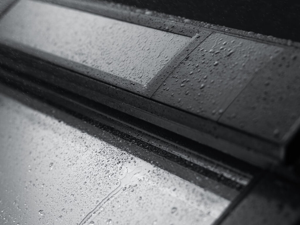 Dešťový senzor střešních oken VELUX je nadřazen všem ostatním, tedy i „chytrým“ funkcím střešních oken. To znamená, že v případě deště tento senzor otevřené okno nekompromisně zavře, ač můžete mít v aplikaci zrovna nastaveno větrání. A dokud dešťový senzor neuschne, resp. nevyhodnotí, že už neprší, tak okno nedovolí otevřít, i když budete zadávat pokyn k větrání na dálkovém ovládání či v aplikaci. Jen pár centimetrů čtverečních plochy dešťového senzoru, který reaguje na vlhkost (elektricky napájená okna VELUX) či dopadající kapky (solárně napájená), se tak za vás postará o váš klid.