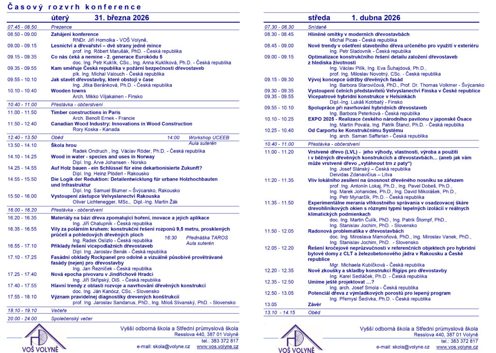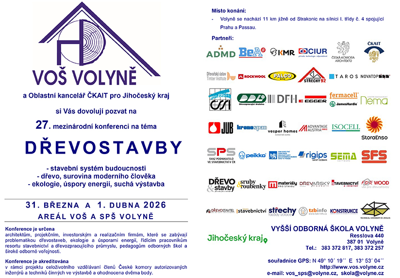 VOŠ Volyně navazuje touto konferencí na předchozích dvacet šest úspěšných ročníků. Škola se snaží o propojení vyššího studia s praxí a vysokými školami a věří, že toto spojení je jednou z podmínek rozvoje a zvyšování kvality vyššího odborného studia i rozvoje výstavby dřevostaveb.
