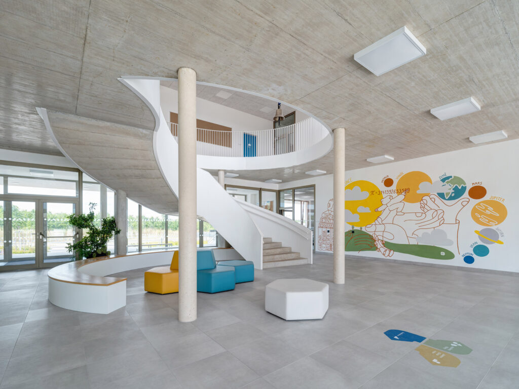 Ředitel školy k tomu dodává: „Výrobky RAKO znám od dětství. Pro menší děti to možná není důležité, ale starším studentům je třeba připomínat tradici domácích značek. Vzhled betonu přináší interiéru vyváženost a neutrální pozadí. Výběr barev a materiálů není jen „estetickou výchovou“, ale i tichou lekcí v tom, jak si vážit svého prostředí. Po roce provozu škola stále vypadá jako nová, což jen potvrzuje, že jsme se rozhodli správně.“