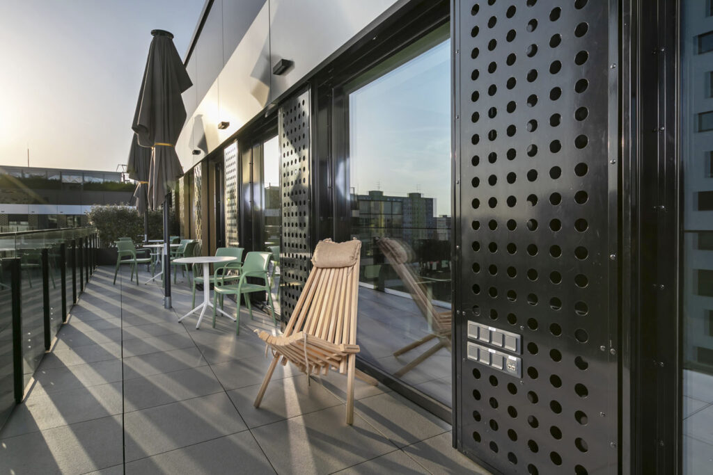 „Na terasy, balkóny obou budov Einpark byly vybrány keramické outdoorové dlaždice Kaamos Outdoor 60 x 60 cm se zesílenou tloušťkou 2 cm jako optimální řešení z několika klíčových důvodů,“ dodává Peter Tomčík, technický poradce RAKO. „Jejich jedinečná odolnost vůči proměnlivým podmínkám počasí zaručuje dlouhou životnost a minimální nároky na údržbu, což je ideální pro vytížené venkovní prostory komerčních prostorů. Maximální snahou projektového týmu RAKO je vždy dodat do projektu ty nejlepší materiály vyhovující přísným technickým parametrům a požadavkům investora,“ doplňuje Tomčík. Dlaždice jsou nejen trvanlivé, nehořlavé, ale také ekologicky šetrné, čímž přispívají ke snižování ekologické stopy celé budovy. Jsou vyráběny s ohledem na životní prostředí a podporují zelené stavitelství, které je klíčové pro získání certifikátů jako LEED PLATINUM a LEED Zero Carbon. Díky svým estetickým vlastnostem navíc harmonicky zapadají do sofistikovaného designu budovy, což zajišťuje příjemné a zdravé pracovní prostředí pro všechny uživatele kanceláří i bytů. V koupelnách a v dalších prostorech byly také využity keramické obklady RAKO ve formátech 60 x 60 a 30 x 60 cm s ohledem na ekologii, zdravotní nezávadnost materiálů a podobně.