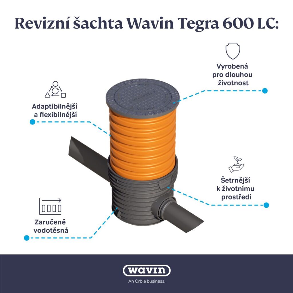 Společnost Wavin představuje svůj nový produkt v oblasti kanalizačních systémů. Revizní šachta Tegra 600 LC se vyznačuje nejvyššími standardy udržitelnosti na trhu. Vedle minimálních dopadů na životní prostředí nabízí i vysokou odolnost, až dvojnásobně delší životnost oproti běžným řešením a snadnou instalaci.