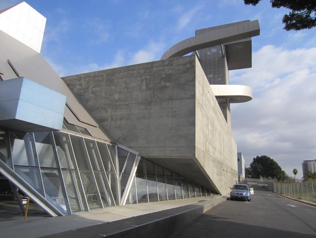 Obr. 6 a 7 – Pohledové betony na fasádách školy výtvarných umění v Los Angeles