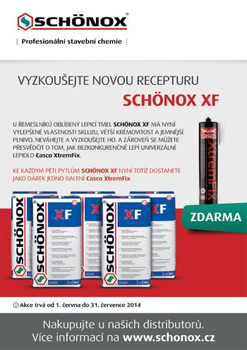 Společnost Schönox nabízí nově flexibilní lepidlo na obklady SCHÖNOX XF s vylepšenou recepturou, k níž přispěly poznatky při zpracování původního lepidla a neustálá komunikace mezi zpracovateli a firemním vývojovým centrem. Lepidlo má upravené vlastnosti skluzu, větší krémovitost a jemnější plnivo.