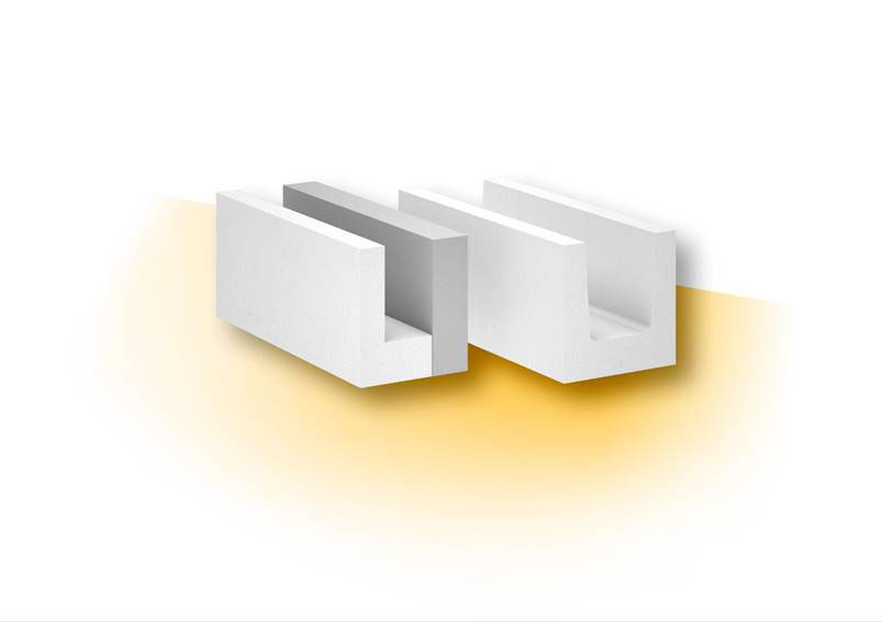 U profily Ytong jsou bednící prvky – ztracené bednění z pórobetonu a jsou určeny ke zhotovení pozedních věnců, železobetonových překladů, průvlaků a sloupů. YQ U profily jsou opatřeny tepelnou izolací EPS. Profily minimalizují tepelné mosty a lze s nimi snadno a rychle realizovat jednoduché ztracené bednění monolitických konstrukcí. Do sortimentu patří i dlouhé poloprefabrikované překlady v U-profilech Ytong s délkou 3500 a 4000 mm. Tyto překlady tvoří trigonová výztuž, zabetonovaná do úrovně U-profilu. Vrchní část trigonu se pak dobetonuje na stavbě jako součást věnce nebo stropu. Tento typ překladů zrychluje betonářské práce, snižuje jejich rozsah a zjednodušuje omítání stěn. Betonové překlady v U-profilu se dodávají v tloušťkách 200, 250 a 300 mm a jejich základní výška je 250 mm. Únosnosti překladů budou dostatečné pro běžná zatížení od stropů odpovídající rozponům 6-7 metrů.