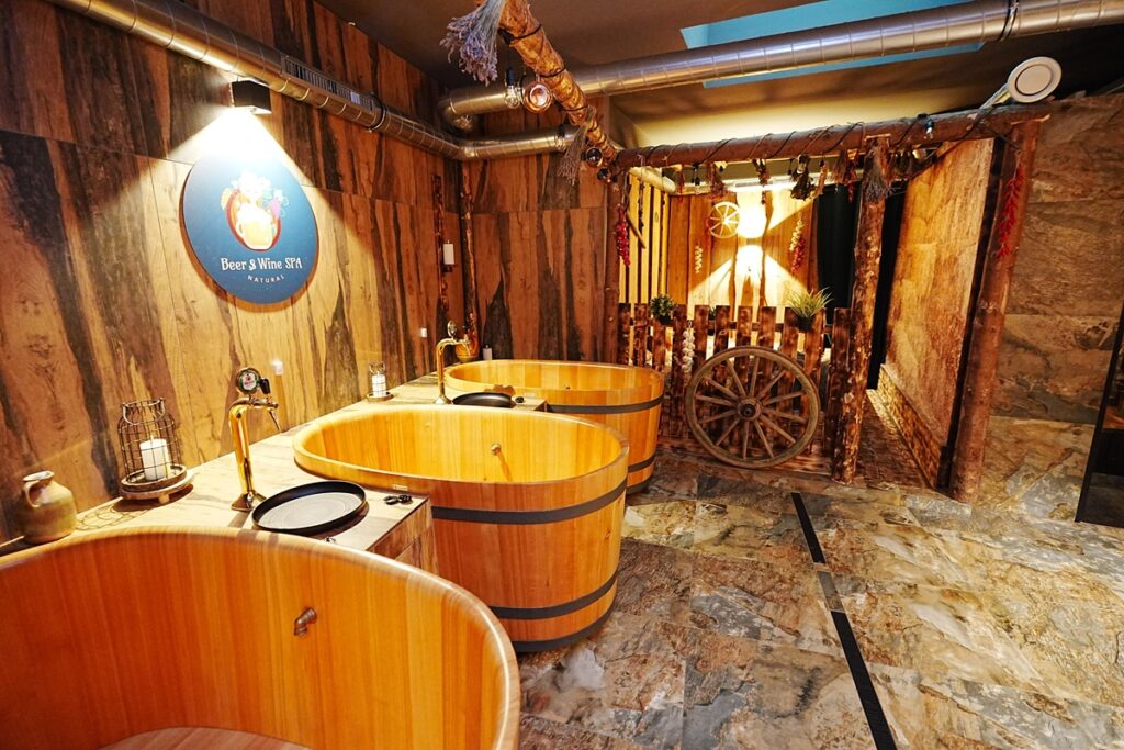 Kromě centrální části lázní, která zahrnuje tři kádě, sprchy a sociální zázemí, je součástí provozu také privátní sekce pro páry – se saunou, sprchou a jednou kádí. Všechny dřevěné kádě byly ručně vyrobeny v České republice tradičním bednářským způsobem, podobným výrobě pivních sudů. Horká voda je při přípravě koupele manuálně obohacena pivním extraktem, který má příznivé účinky na pokožku a organismus. Součástí všech procedur je samozřejmě také neomezená konzumace piva, konkrétně Svijanského Mázu 11. Pivní lázně se nacházejí v Masné ulici, nedaleko Staroměstského náměstí, tedy v samém centru historické části města.