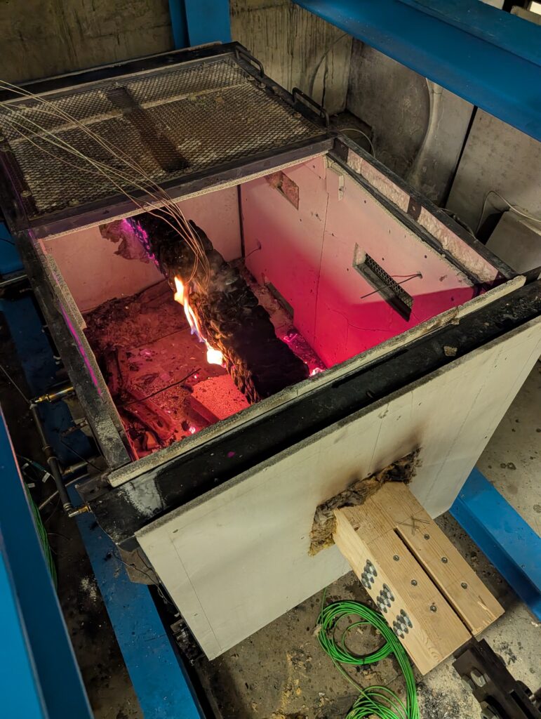 Jednou z prvních aplikací bylo například ověření různých typů ochrany ocelových spojovacích prostředků ve spojích dřevěných nosníků ve spolupráci se společností Michna&Perháč s.r.o. „Proběhly požární tahové zkoušky dřevěných spojů, při nichž jsme sledovali, jak konstrukční detaily ovlivňují chování spojů při kombinaci vysoké teploty a mechanického zatížení. Testovali jsme různé varianty provedení kolíků a drážek a jejich vliv na rychlost ztráty únosnosti a porušení spoje při požáru. Právě možnost takto detailně a realisticky ověřovat chování spojů je klíčová pro návrh bezpečných a odolných dřevostaveb,“ uvedl Ondřej Perháč z vedení společnosti Michna&Perháč s.r.o.