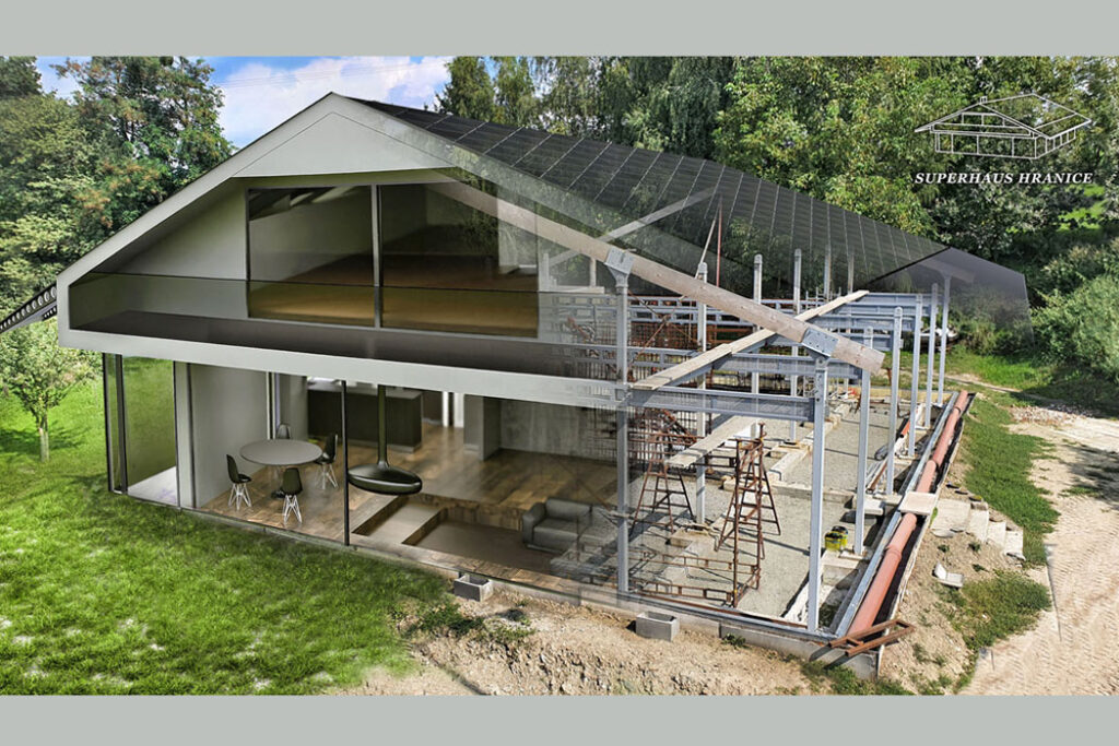 Superhaus Moravia tvoří železo, beton a sklo. Originální experimentální dům kombinuje moderní design s netradičními technologiemi od samotné konstrukce domu až po vytápění nebo rekuperaci ze solárních zisků.
