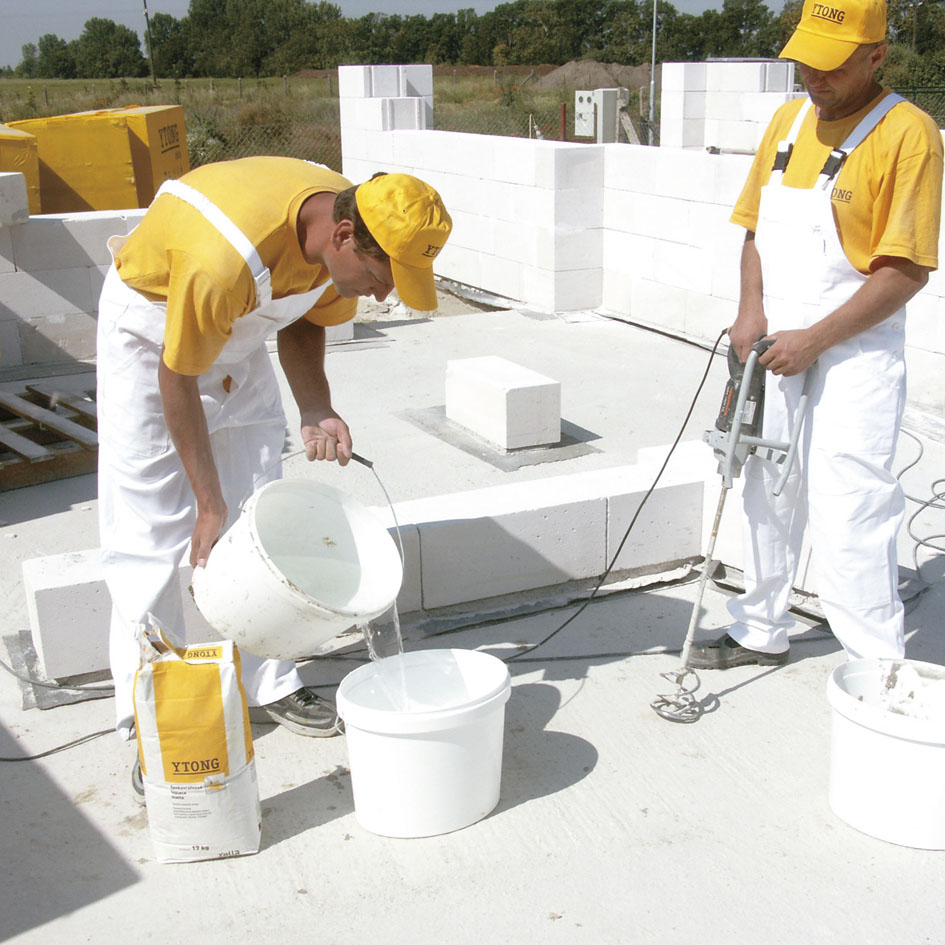 Zdicí malta Ytong se snadno zpracovává, pro její přípravu budete potřebovat jen několik jednoduchých pomůcek: Ytong míchadlo zapojené do elektrické vrtačky, nádobu na rozmíchání malty a vodu. Tenkovrstvé zdění se zdící maltou Ytong znamená minimum malty a tím i minimum zabudované vlhkosti ve stavbě. Výhodou je také eliminace tepelných mostů v místě spár.
