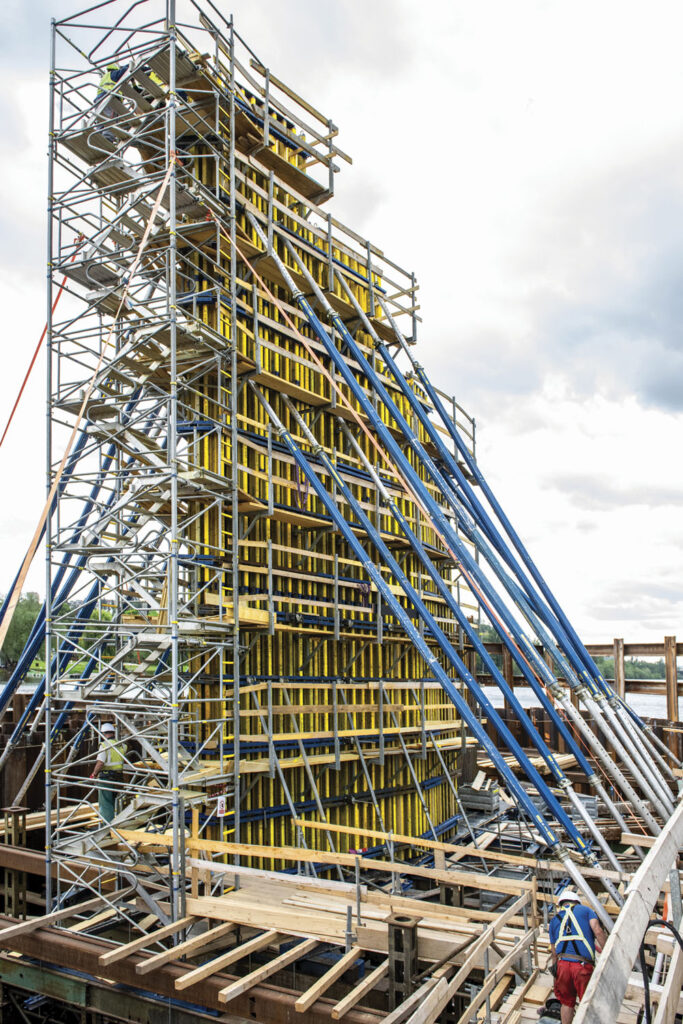 Spodní stavba mostu je specifická jasně definovanými tvary i povrchy, se kterými si obyčejné systémové bednění zkrátka nedokáže poradit. Proto odborníci na bednění ze společnosti Doka navrhli a vyrobili atypické bední formy pro kompletní realizaci monolitu spodní stavby a části mostovky. Vzhledem k unikátnímu kubistickému designu se jedná o nasazení zvláštních bednění téměř pro každou část betonáže.