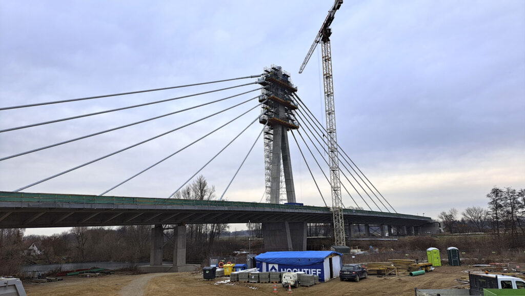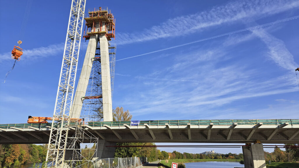 Výstavba pylonu pomocí šplhacího bednění se ukázala jako efektivní a v zásadě jednoduchá.