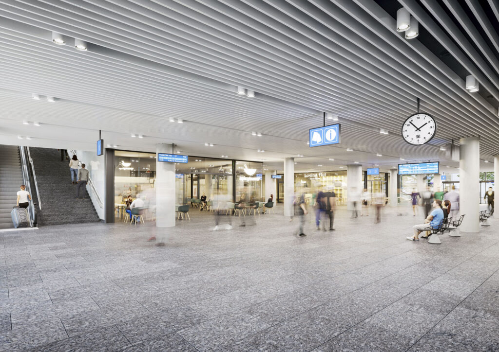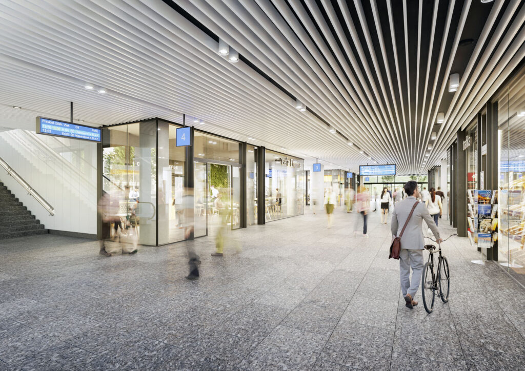 Jižní i severní vestibul jsou s nástupišti propojeny trojicí pevných schodišť, čtveřicí eskalátorů a pro bezbariérový přístup třemi výtahy. Vestibuly jsou koncipovány jako rozptylové (shromažďovací) plochy s přístupem na jednotlivá nástupiště a jsou zde umístěny komerční prostory. V severním vestibulu je umístěn hlavní technologický blok železniční stanice. Střední vestibul bude při uvedení do provozu sloužit pouze jako přístupová komunikace k nástupištím a je stavebně připraven na budoucí doplnění technologických a obchodních prostorů.