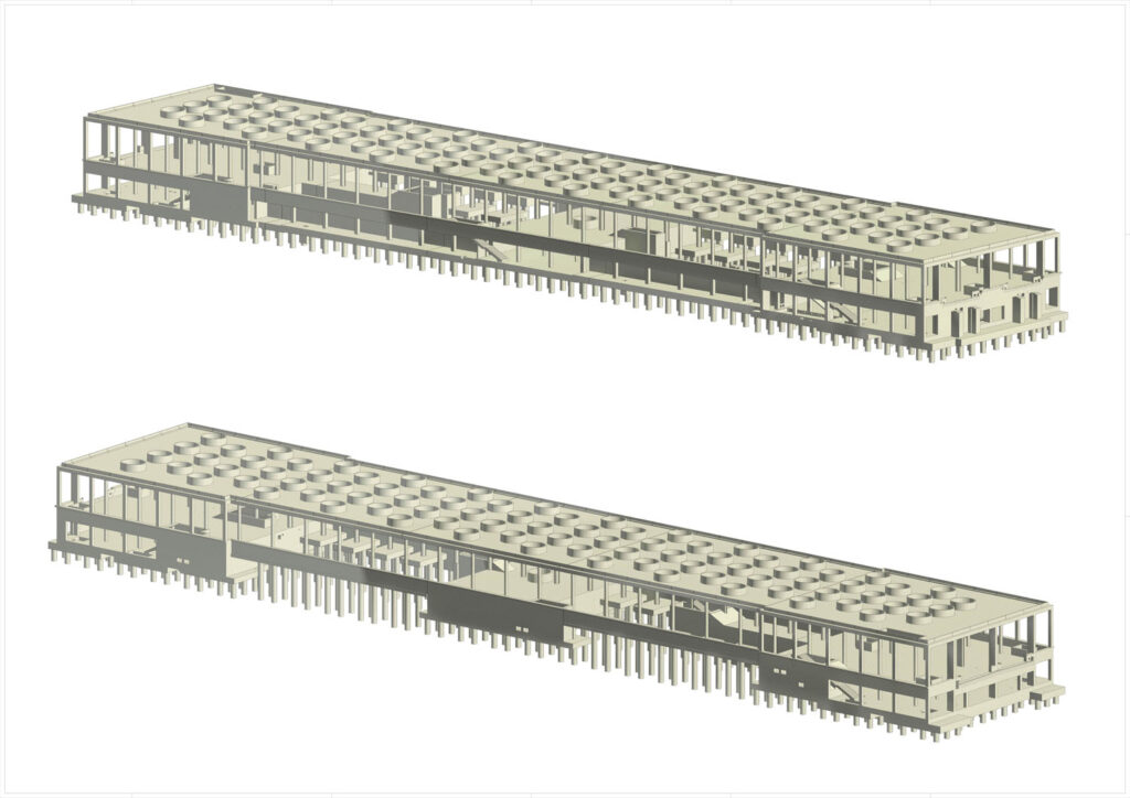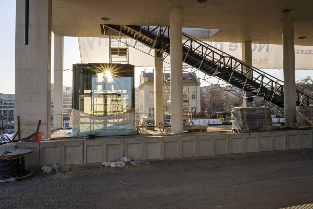 Po dokončení základové desky byly nosné konstrukce stěn, sloupů a stropních desek vestibulů zbudovány tradičním postupem.
