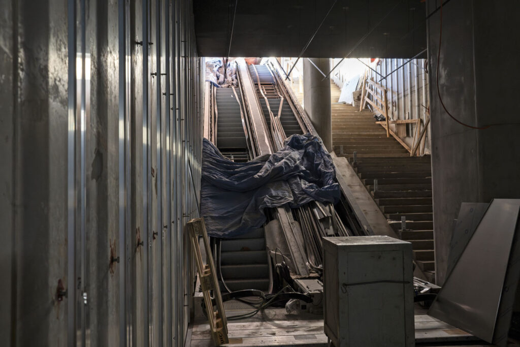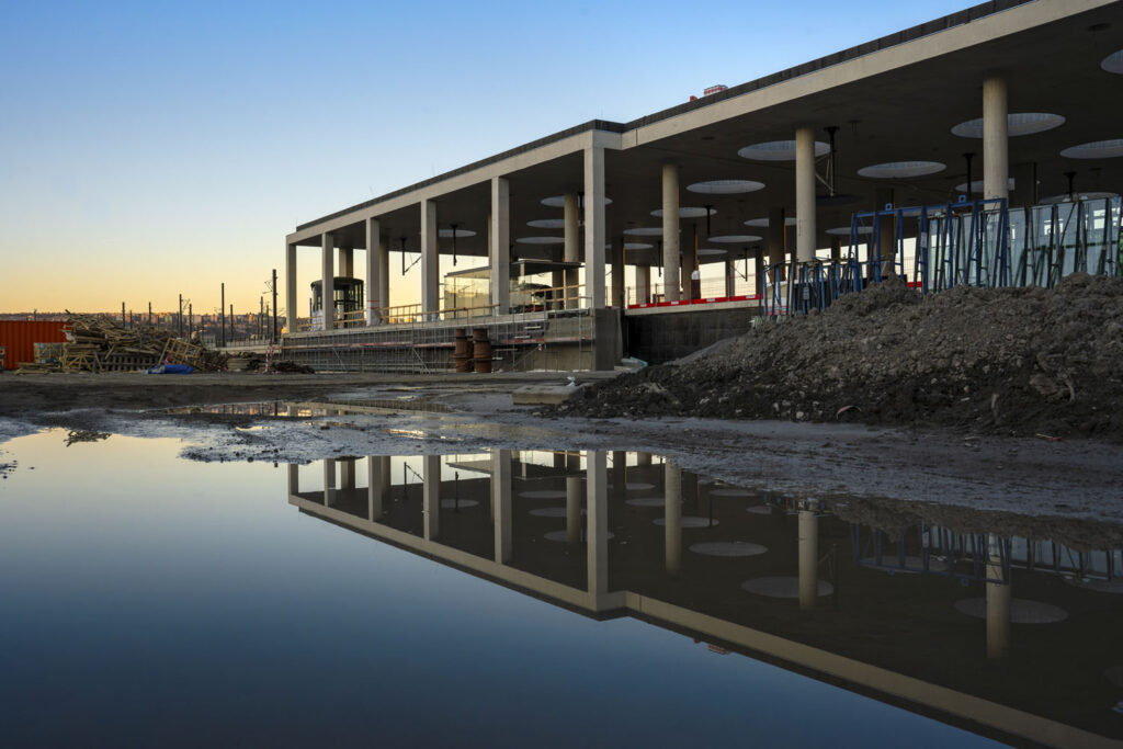 Následně byla konstrukce realizována po úrovních a dilatačních celcích, vždy počínaje DC1, DC3 a DC5, ve kterých jsou umístěny vestibuly, a konče mezilehlými dilatačními celky DC2 a DC4, ve kterých jsou umístěny spojovací koridory. Zbylý prostor DC2 a DC4 byl následně vyplněn hutněným zásypem.