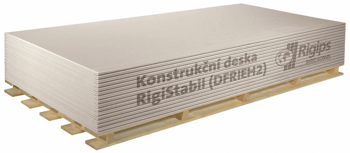 Sádrokartonová konstrukční deska RigiStabil je jedinečný stavební materiál, který lze na stavbách všestranně použít. Speciálním výrobním postupem vznikla vysoce odolná, konstrukční deska, která se hodí i do míst se zvýšenou vzdušnou vlhkostí (př. koupelny, kuchyně).