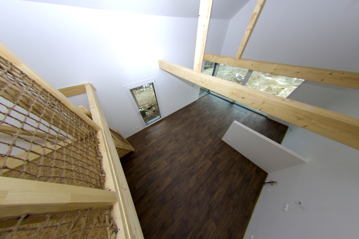 Při montáži prefabrikovaných elementů dřevostavby byla použita expanzní malta Fermacell, která vyrovná nerovnosti desky, aby byl prostor mezi panely a základovou deskou po celé šířce i délce vyplněn.