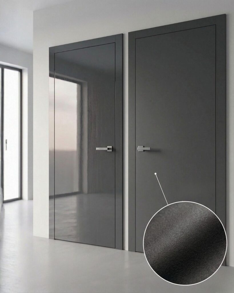Softmatt vytváří jednotný, neodleskující povrch se sametovým efektem. Na rozdíl od běžných matných laků dodává dveřím měkkost, která interiéru propůjčuje prémiový charakter. Je ideální volbou pro architekty a designéry, kteří hledají vizuálně čistý prvek schopný propojit různé materiály v jeden harmonický celek.