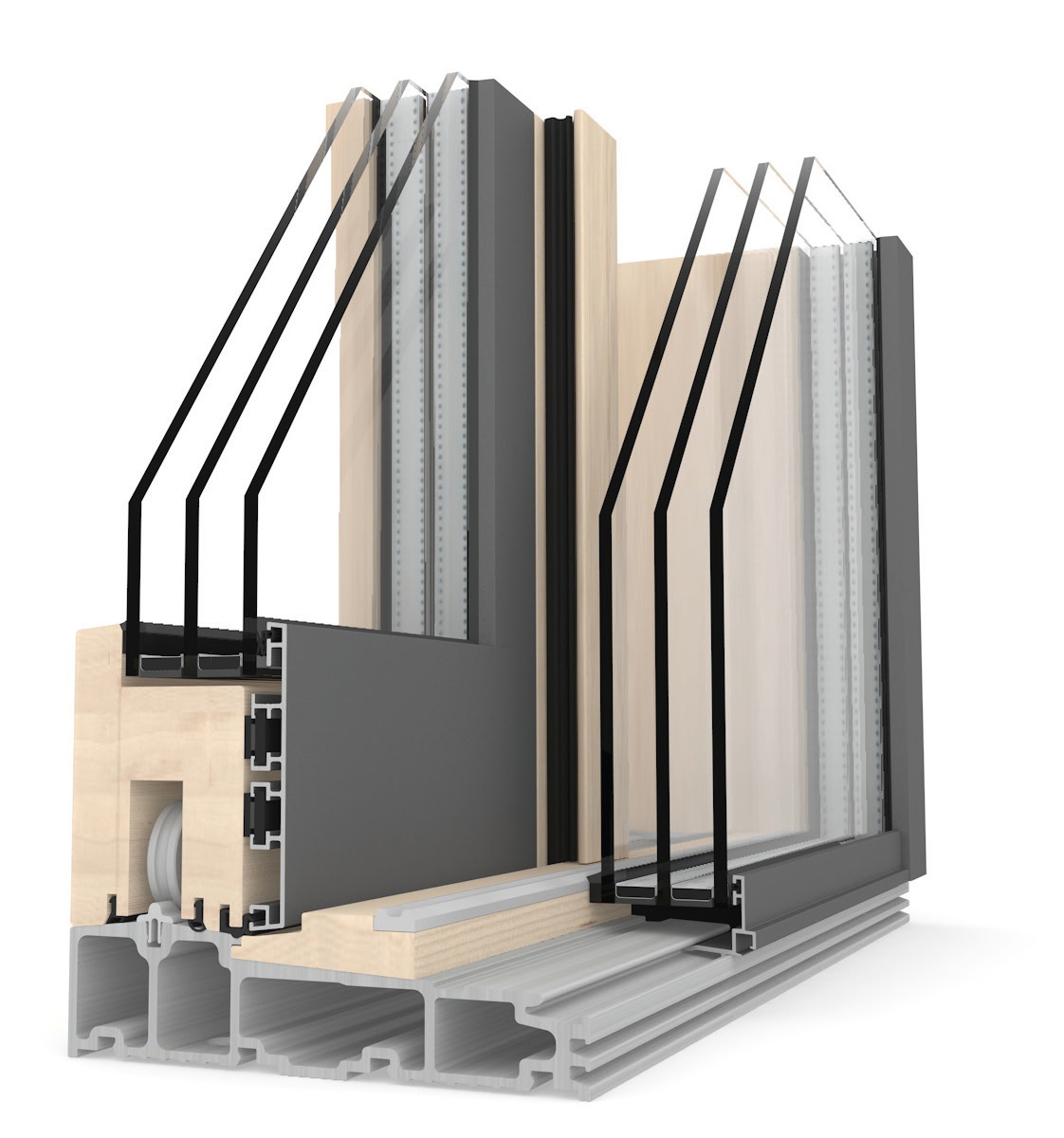 Nové dřevohliníkové posuvné dveře se zdvihem se vyznačují úzkou rámovou konstrukcí a velkým prosklením. Nová technologie prahu ze skelných vláken nabízí v kombinaci se sériově dodávaným trojsklem nejvyšší míru tepelné ochrany a extrémní tuhost – dveře jsou vhodné také pro pasivní domy. Nízká výška prahu eliminuje nebezpečí zakopnutí a je ideální pro bezbariérové stavby.