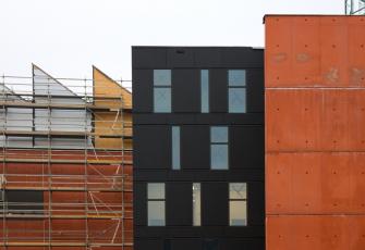 Příprava pro vylévání trvala přibližně 50 dní, samotné plnění pak zabralo 43 hodin a probíhalo nepřetržitě. Výraznou jižní fasádu ještě doplní plastika připomínající oblázek nebo vajíčko, odlitá rovněž z pohledového betonu, jež bude těžištěm vnitřního atria mezi budovami. Tato plastika, stejně jako bublinková opona, krásně vynikne na pozadí fasády z červeného betonu.
