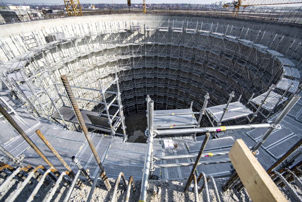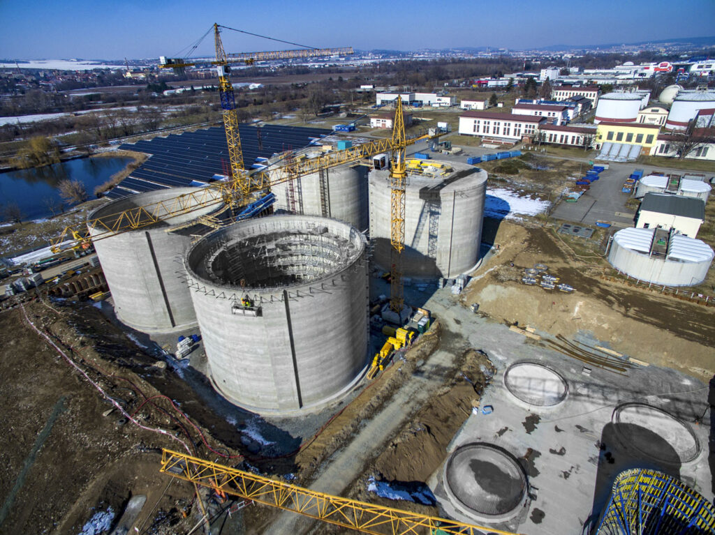 V rámci modernizace čistírny odpadních vod v Modřicích byl systém Doka Ringlock nasazen jako vnitřní pracovní a zároveň podpěrné lešení v nově budovaných vyhnívacích nádržích – betonových nádržích o průměru 24 m a výšce téměř 20 m. Lešení bylo navrženo jak jako pracovní pro úpravu betonových povrchů, tak zároveň jako podpěrná konstrukce obvodové části stropní desky tloušťky 400 mm. Spolehlivost, stabilita a snadná manipulace hrály klíčovou roli, a proto si společnosti Tažené Konstrukce Pardubice a IMOS Brno lešenářský sytém Doka Ringlock vybraly. Pro podporu vnitřní části stropní konstrukce byla využita také pevná skruž Staxo 100 a stropní bednění tvořil systém Dokaflex. Celý komplet doplnil senzorový systém Concremote, který pomáhal sledovat vyzrávání betonu s maximální přesností.