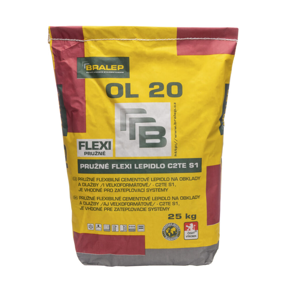 Flexibilní lepidlo OL 20 se hodí na všechny typy obkladů a dlažeb ve vnitřním i vnějším prostředí, včetně moderních velkoformátových dlažeb