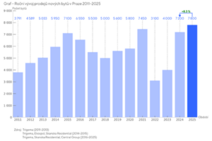 Pražský trh s novými byty má za sebou nejúspěšnější rok za celou dobu, kdy se vedou prodejní statistiky. Celkem se loni v metropoli prodalo 7 800 nových bytů, meziročně o 8 % více. Historických maxim dosahují i ceny, které se již přiblížily hranici 180 tisíc Kč/m². Naproti tomu nabídka bytů meziročně o 10 % poklesla a nadále absolutně nedostačuje potřebám […]