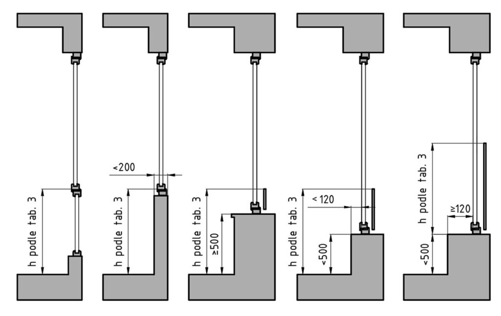 PoložkaNejmenší dovolená výška zábradlí H [mm]Použití