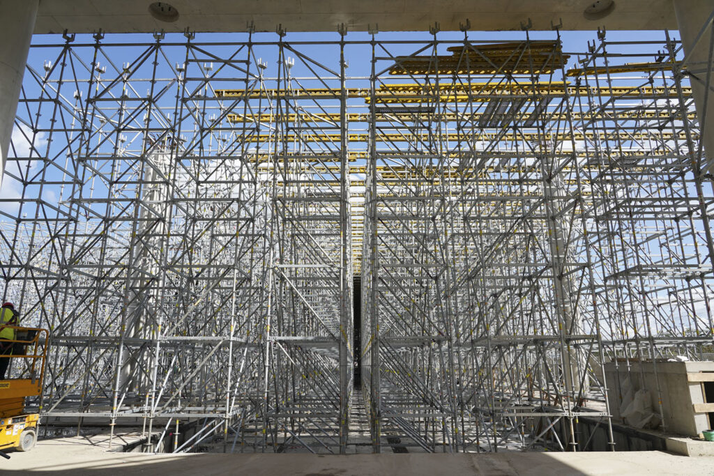 Strop nad 1. podzemním podlažím byl realizován pomocí osvědčeného nosníkového systému MULTIFLEX, který umožňuje přizpůsobení tvaru a zatížení podle potřeb stavby. V dalším nadzemním podlaží byl použit systém PERI UP jako podpěrná konstrukce stropu. Podpěrné konstrukce byly jednou z nejnáročnějších částí celé výstavby – bylo potřeba současně podepřít tři dilatační celky o celkovém objemu 75 000 m3, přičemž bylo nasazeno obrovské množství podpěr. Stavebnice lešení PERI UP zajistila rychlost montáže i schopnost přizpůsobit se různým výškám založení a rozdílným zatížením.