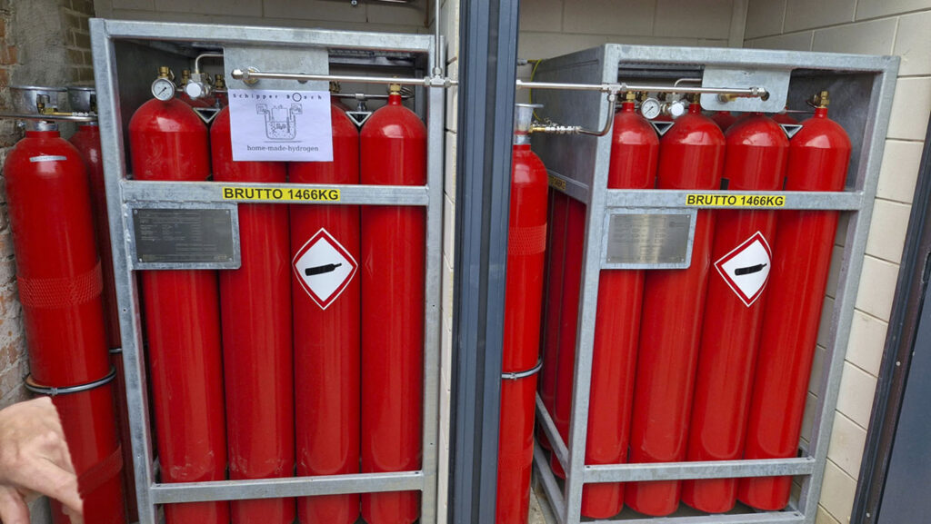 Základní lokální skladovací jednotkou jsou dnes nejčastěji láhve nebo svazky lahví, kde se vodík skladuje v plynné formě. Obvykle se jedná o standardní láhve o objemu 50 l. Při tlaku 200 barů představuje taková láhev zhruba 9 m3 vodíku, tedy zhruba 0,8 kg, což odpovídá cca 28 kWh. Svazek 12 lahví na paletě pak představuje zhruba 9,6 kg vodíku, tedy asi 317 kWh energie.