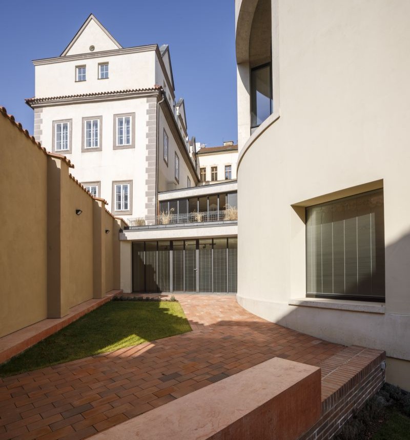 Významnou součástí projektu se stala i obnova původní ohradní zdi, která jako jediná na pozemku podléhala památkové ochraně. Její technický stav byl ale natolik špatný, že nezbývalo než ji rozebrat a znovu vystavět ze stejných cihel. Možnosti recyklace stavebních materiálů jsou dnes velice aktuálním tématem, které zděné stavby staví do nových pozic z hlediska celistvě pojímané udržitelnosti v architektuře. „Nová zeď má stejnou výšku i proporce jako původní a dotváří uzavřený charakter pozemku se zahradou. Dům za ní působí nenápadně a neruší okolní zástavbu, takže do prostředí Malé Strany zapadá zcela přirozeně,” dodává profesor Lábus.
