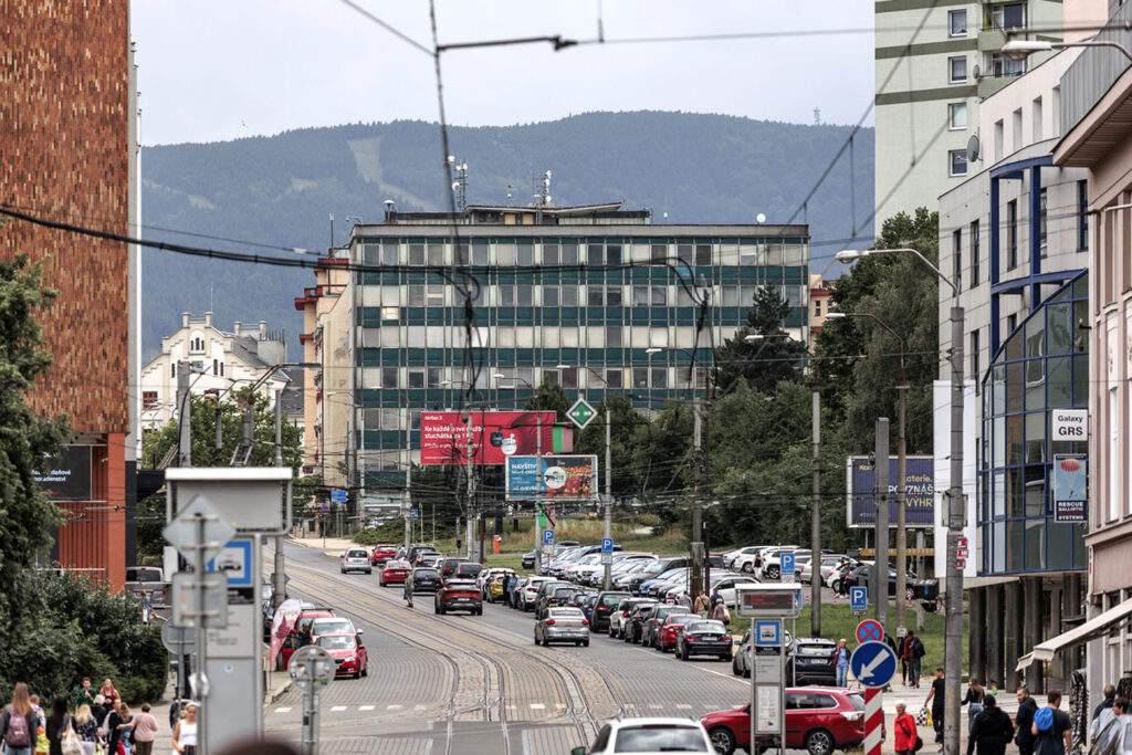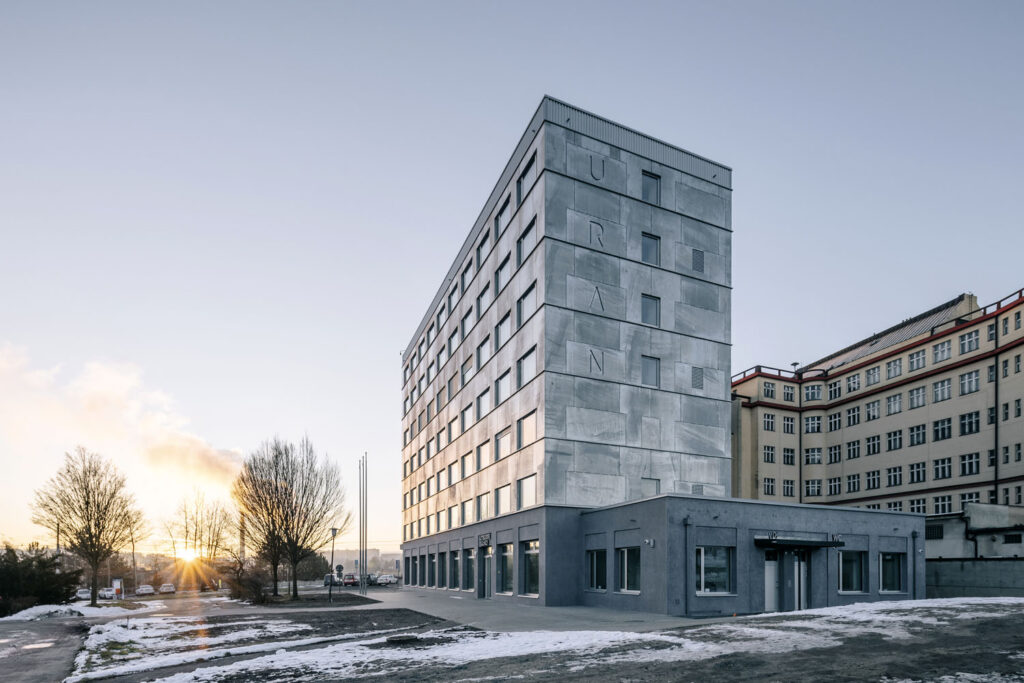 Návrh obnovy obvodového pláště navázal na výrazné horizontální členění fasády, byl dodržen i poměr mezi prosklenými a plnými částmi fasády, nezměnilo se ani drobné měřítko skladebných částí obkladu. „Navázali jsme i na tektonický skladebný systém. Pracovali jsme s různou hloubkou detailu odpovídající tomu, z jakých vzdáleností je stavba vidět. Výrazné horizontální členění a nápisy URAN jsou viditelné z centra města po ulici 1. máje i při průjezdu po dálnici od Prahy a Žitavy. Detaily obložení sloupů, stříška nad vstupem a jednotlivé torxové hlavy šroubů uchycení plechu jsou patrné při vstupu do vestibulu. Z indiferentní administrativní budovy 70. let minulého století se nám tak podařilo vytvořit jedinečnou stavbu,“ dodává architekt Ondřej Synek.