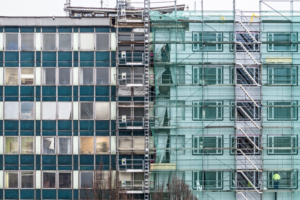 Již v rámci přípravy bylo zřejmé, že realizace nebude jednoduchá. V první etapě se započalo s demontáží na nároží, které bylo poškozené zatékáním. V minulosti navíc proběhl naprosto neodborný zásah na západním štítu, zateplení z interiéru bez jakékoliv difuzní uzávěry. Způsobilo to intenzivní kondenzace přesně v rovině ocelových rámů, takže některé části musely být nahrazeny. „Jednotlivé případy tak bylo třeba staticky posoudit a práce se tak zdržely. V rámci projekčních prací jsme s tím počítali, ale „rezervu“ jsme vyčerpali hned na začátku. Následně se však potvrdilo, že zbytek fasády je téměř v naprostém pořádku a druhá etapa proběhla za méně než poloviční čas, přestože byla větší a prostorově náročnější. Příznivě se projevila i skutečnost, že po geodetickém zaměření obnažených rámů fasády byly maximální odchylky jak v plošné rovině, tak i výškově jen do 10 mm. To potvrdilo moji zkušenost – u ocelové konstrukce hlavního skeletu bývají rozdíly malé, ale u montovaného skeletu z prefa dílců už jsem zažil disproporce i 5 cm,“ dodává Ivo Zeman.