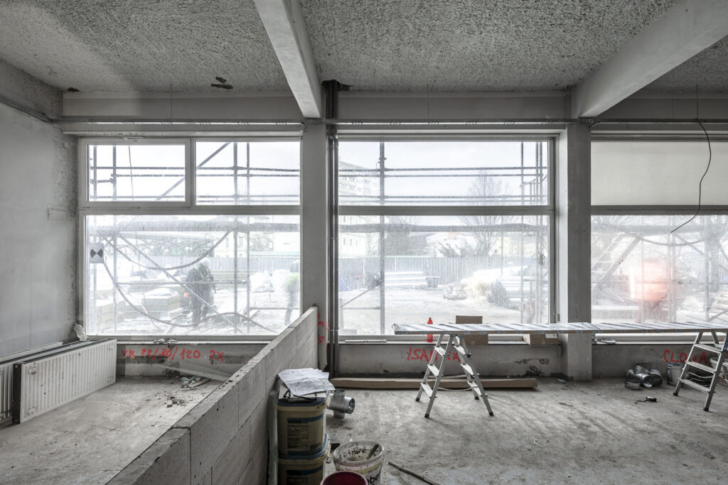 „Při montáži oken se v předstihu vkládal přední dílec nerezové kapotáže rámů fasády, které za okny v interiéru částečně probíhají. Samostatnou kapitolou pak bylo požární řešení a zajištění ocelových částí konstrukce obvodového pláště. I přes tuto komplikaci se nám podařilo elegantně vyřešit plošnou, realizačně jednoduchou difuzní uzávěru, která je u těchto konstrukcí stěžejní,“ upřesňuje Ing. Zeman.