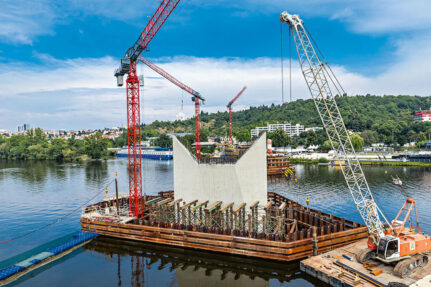 Obojživelný dům připlul na lodích